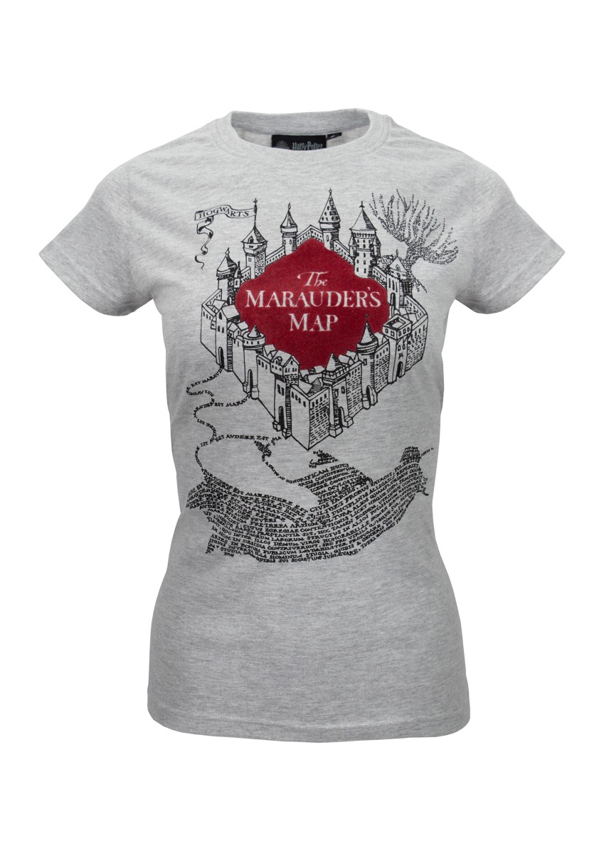 HP103L Ladies Marauders Map Fitted T Shirt Flock Print Harry Potter